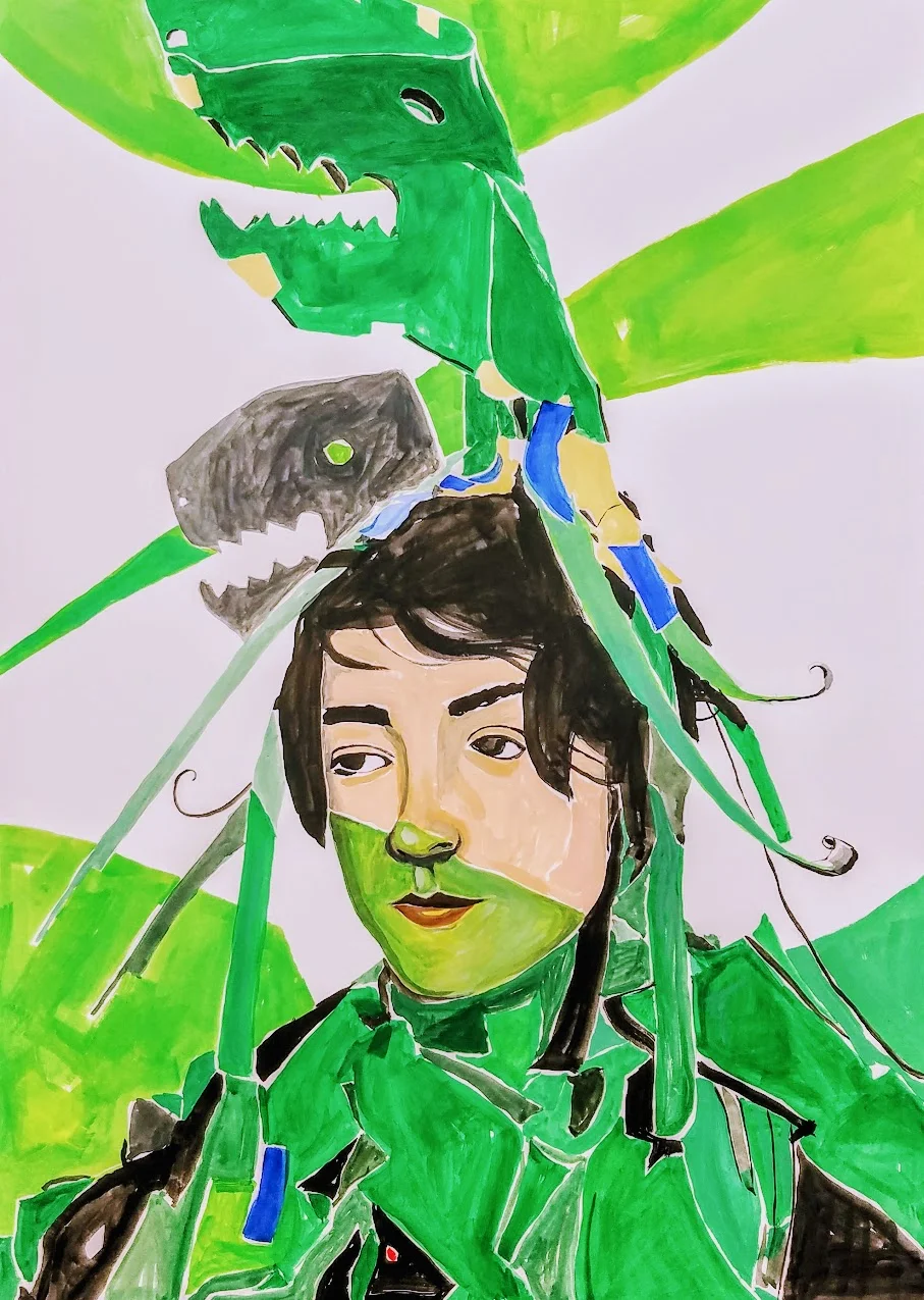Talia dino head. Gouache on paper, 30”x 22”